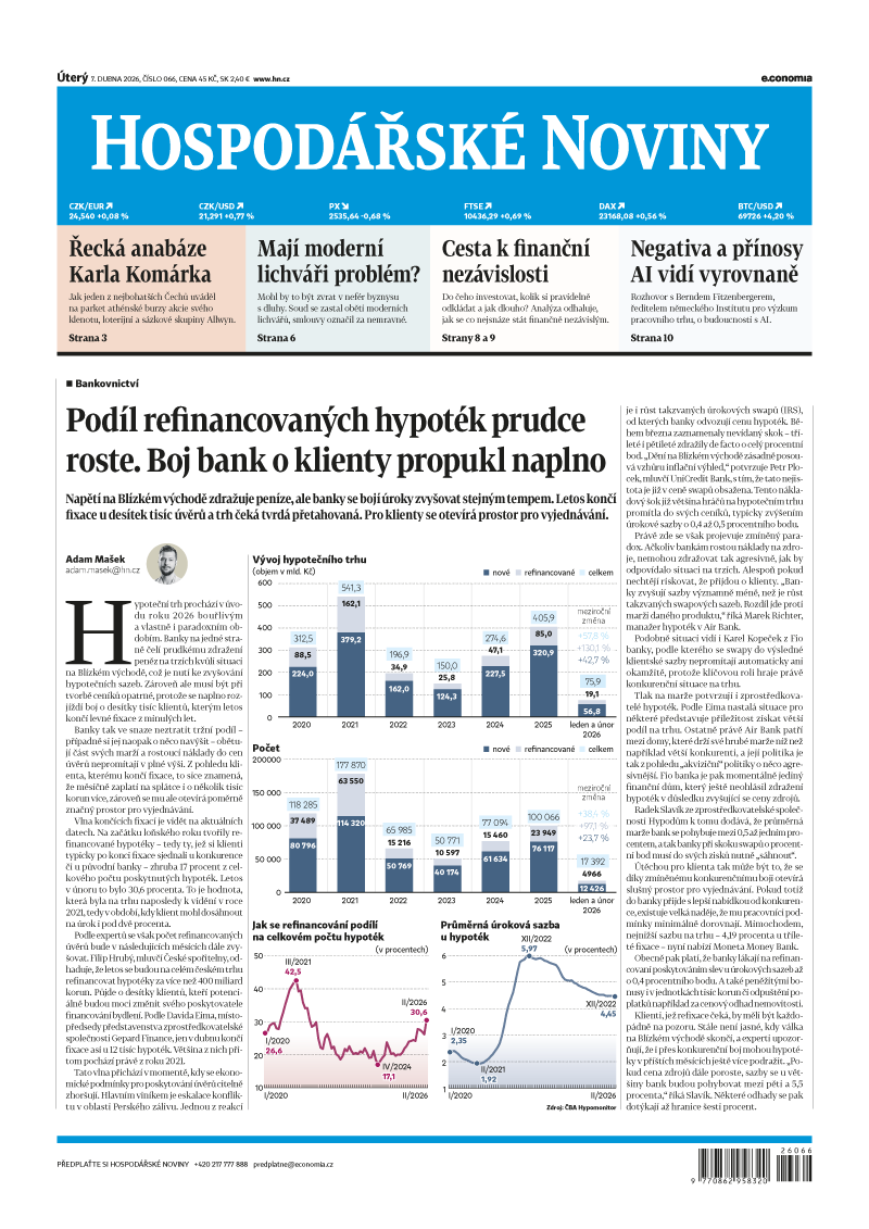 Boj o hypoteční klienty naplno propukl a prudce roste podíl refinancovaných úvěrů. Pro klienty se otevírá prostor pro vyjednávání