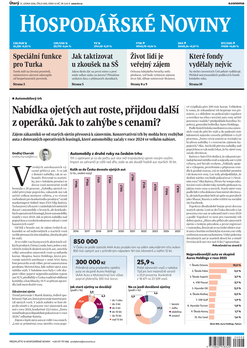 V českých bazarech výrazně přibývá ojetých aut, a to i ze zahraničí, přičemž dovoz v prosinci 2025 vzrostl o téměř 20 %.