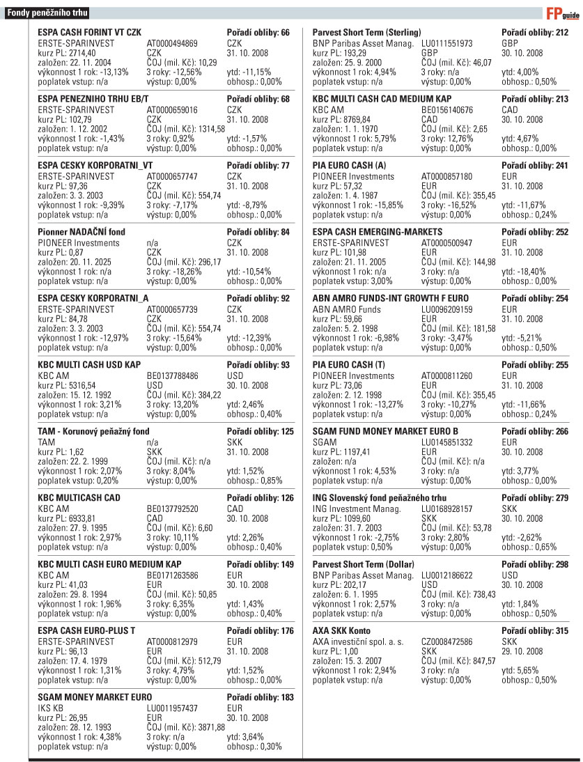 Všude na světě se klientům tvrdí, že u nich jde o krátkodobý investiční horizont kolem šesti měsíců a že hodnota podílových listů prakticky neklesá. Krize ale přinesla dosud neznámé problémy. Mezibankovní trh s krátkými dluhopisy sice také zamrzl, ale to v naší "korunové" oblasti není takový problém. Naše fondy peněžního trhu však mají obecně průměrnou duraci dluhopisových aktiv jeden rok, takže v majetku mají i delší dluhopisy. To jim vinou současné finanční krize přineslo nejen nárůst spreadů, ale mnohé ještě výraznější potíže.
