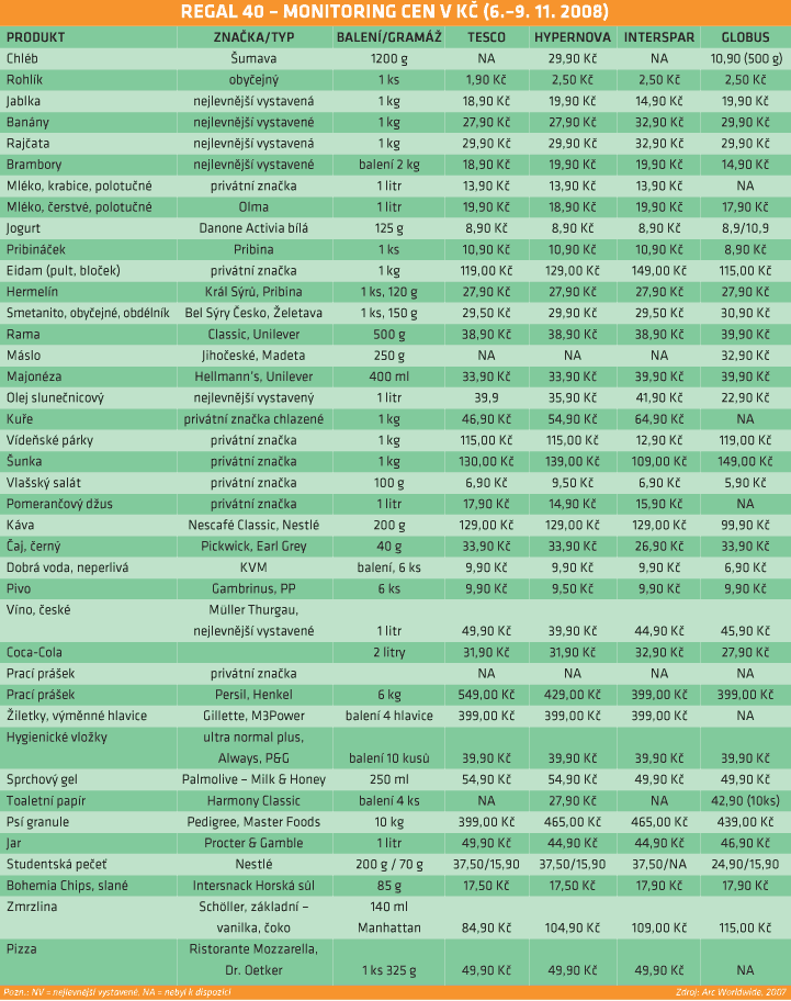 REGAL 40 - monitoring cen v Kč (6.-9. 11. 2008)