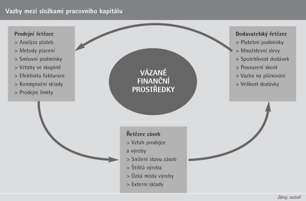 Proč řídit pracovní kapitálZákladem aktivního řízení pracovního kapitálu je komplexní pohled na kapitálovou náročnost fungování firmy, který umožňuje odhalit slabá místa a rezervy a dosáhnout konkrétních finančních úspor. Jedná se o procesně finanční přístup zaměřený na dodavatelský, odběratelský, zásobovací a výrobní řetězec. Obsahem je řízení potřebných finančních zdrojů vedoucí k dosažení rovnováhy mezi provozně nutnou potřebou těchto zdrojů, kapitálovou fixací a efektivním fungováním procesů bez dopadu na kvalitu nebo spolehlivost dodávek pro zákazníka. Cílem je uvolnit nedostatečně efektivně vázané prostředky z oběžných forem majetku.