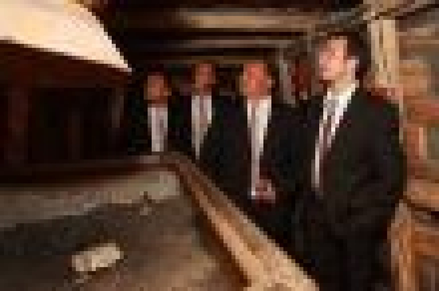 Netradičně v týmových oblecích a kravatách se oba týmy nasoukaly do nepříliš prostorného výtahu, kterým sjely o patro níž. Tam se prošly štolami a pak zase vyjely nahoru směrem do kompresorovny.
