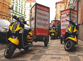 Společnost Vostrý Vosy zavádí nové reklamní médium, trojstranné vitríny, které buďto mohou být zavěšené na skútru, či mohou stát samostatně a sloužit jako doplněk při promoakcích. Plochy jsou podsvícené, k dispozici je 5 skútrů, které jezdí denně 8 hodin do 100?km, mají i GPS zařízení. Jako první tohoto média využila minulý víkend společnost Zanzibar na propagaci produktu VK Mojito.