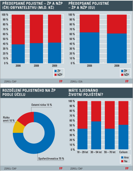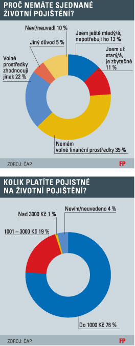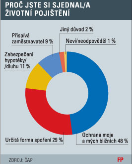 OCHRANA ZŮSTÁVÁ NÍZKÁTéměř 70 % lidí, jak průzkum ukázal, si uzavírá podle svého tvrzení životní pojištění s úmyslem ochránit sebe a své blízké. Statistiky však dokazují i jinou skutečnost, totiž že pouze 25 % z pojistného v životním pojištění jde skutečně na zabezpečení smrti a připojistitelných rizik (úraz, závažné nemoci, invalidita apod.). Lidé sice chtějí ochranu, avšak životní pojištění přesto vnímají častěji jako spořicí nástroj nikoli jako především nástroj ke krytí životních rizik. Výše pojistné ochrany je proto často nedostatečná. Sjednaný rozsah pojištění a výše pojistné částky neodpovídá skutečným potřebám klienta.
