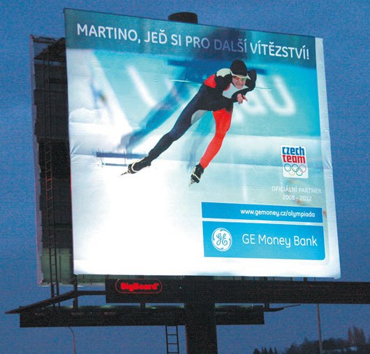 Spolu s agenturou Starcom zároveň BigMedia připravila pro GE Money Bank, partnera českého olympijského týmu, pohyblivou postavu Martiny Sáblíkové v nadživotní velikosti a umístila ji na double-bigboardu u Barrandovského mostu v Praze. Také zde je bruslící postava poháněna elektromotorem. Výška bruslící postavy dosahuje 6,4 metru.