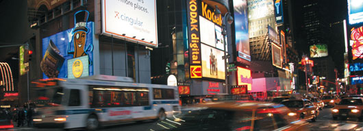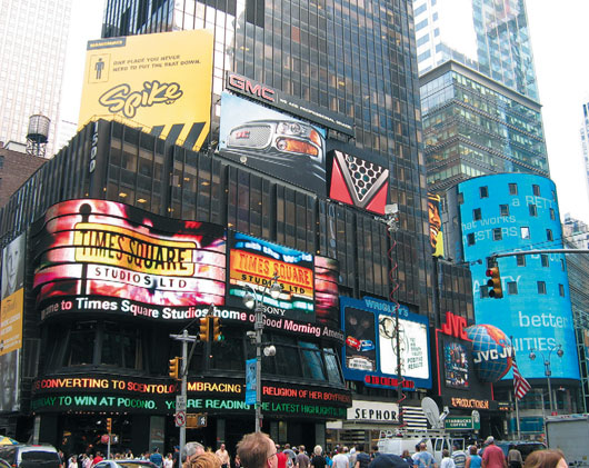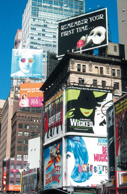 Velká část reklam na Times Square odkazuje na muzikály a divadelní představení, hraná v nejbližším okolí na Broadwayi.