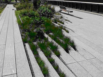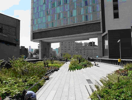 Úplnou novinkou a perlou architektonického a zahradního designu je High Line Elevated Park (já mu říkám visuté zahrady Semiramidiny), ze kterého pocházejí tyto fotky. Park začíná v Greenwich Village a pokračuje skze takzvaný Meet Packing District (čtvrť většinou bývalých jatek, řeznictví a chladíren, kde jsou dnes drahé restaurace, kavárny a taneční kluby) až do Chelsea. Nejlepší vstup do něj se nachází na západním konci 14. ulice.