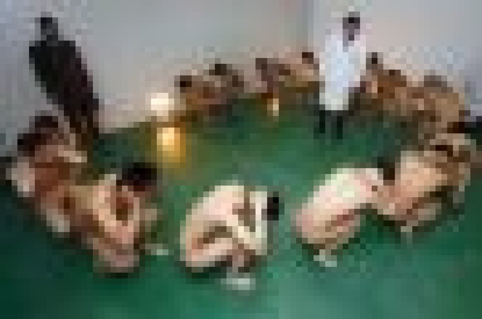 Mladíci se musí podrobit lékařskému vyšetření pro zařazení do Čínské lidové osvobozenecké armády v Suining.