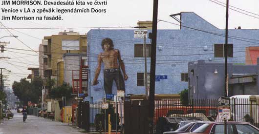 Devadesátá léta ve čtvrti Venice v LA a zpěvák legendárních Doors Jim Morrison na fasádě.