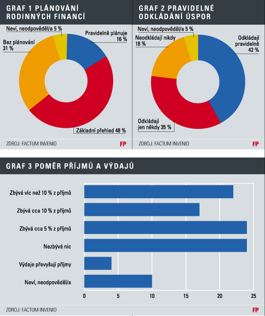 Agentura Factum Invenio v lednu 2011 uskutečnila pro projekt Abeceda rodinných financí průzkum na téma "Finanční zvyklosti v českých rodinách". Výsledky jsou, jako ostatně v případě všech obdobných průzkumů, přinejmenším znepokojivé. Ukazují, že plná třetina Čechů, své příjmy a výdaje vůbec nesleduje.