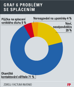 Jak by rodiny řešily situaci, kdyby se dostaly do problému se splácením půjčky? V tomto případě by se většina obyvatel Česka zřejmě zachovala rozumně. Celkem 71 % respondentů odpovědělo, že by ihned kontaktovali věřitele a domluvili s ním řešení. Problémová zůstala poměrně velká skupina necelých 10 % domácností, která by buď zvolila další půjčku, což bývá cesta do pekel, nebo se "schovala". Ovšem nereagovat na upomínky, tvářit se jako by nic, a čekat, že se "to samo" vyřeší, je cesta vedoucí do týchž končin jako předchozí. Ne jejím konci stává exekutor.