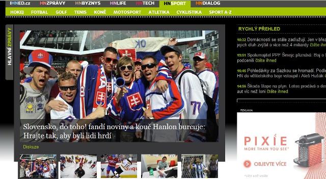 Za všemi těmi grafickými prvky se však skrývá hlavní redakční heslo: „Obsah rozhoduje“. U nás nemají šance povrchní fráze „Chceme vyhrát“ či „Jdeme zápas od zápasu“, snažíme se jít za všední balast. A nezůstávat jen u obyčejných zpráv. V prvních týdnech na web umístíme řadu zajímavostí souvisejících s hokejovým šampionátem. Namátkou: video z továrny na puky, unikátní animaci o Jaromíru Jágrovi, barometr nálady největší české hvězdy, hokejové skeče Davida Matáska či servisní mapu Bratislavy pro fanoušky.