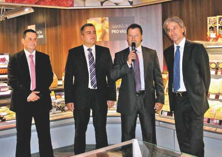 Při zahájení provozu se sešli (zleva): Milan Halamíček, vedoucí prodeje, Billa, Petr Dupal, operativní ředitel, Billa, Miroslav Hanousek, finanční ředitel, Billa a Andrea Odoardi, jednatel Grandi Stazioni ČR.