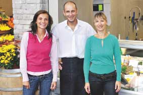 Spolumajitelky rybárny - (vlevo) Eva Boels a Klára Březinová - společně s vedoucím prodejny Arnaudem Scordia.