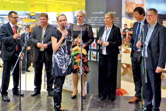 Slavnostního zahájení provozu nové prodejny Albert v Karolině se zúčastnili (zleva) Igor Suchánek, ředitel nových formátů společnosti Ahold, Zbyněk Kozub, regionální ředitel pro oblast Východ, Judita Urbánková, ředitelka PR a komunikace, Jolana Michalcová, manažerka ostravské prodejny Albert , Marcela Varmužová, distrikt manažerka, Jan Van Dam, generální ředitel společnosti Ahold, a Michal Pavelka, viceprezident pro operační oddělení společnosti Ahold.