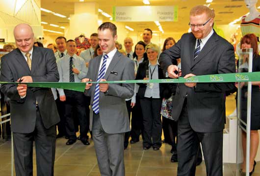 Předseda představenstva Marks & Spencer Dušan Morek a area manager Martin Palarčík spolu se store managerem Radimem Katanským oficiálně otevřeli novou prodejnu tradičním přestřihnutím pásky.