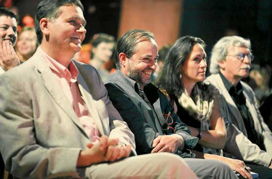 Ceny přijel předat zástupce vyhlašovatele, marketingový manažer společnosti Model Obaly Radovan Wicha, vpravo dlouholetý předseda poroty Jan Činčera.