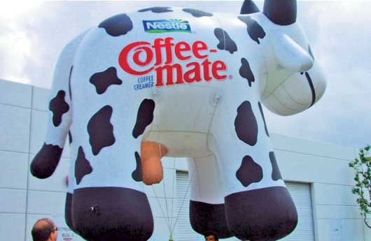 Dochucovač kávy přímo z mléka, říká létající kráva. Ještě, že není fialová...