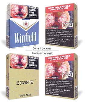 Big Tobacco (British American Tobacco, Japan Tobacco International, Philip Morris and Imperial Tobacco Australia) se snažilo všemi dostupnými prostředky zamezit zavedení Tobacco Plain Packaging Act. TPP zakazuje jakýkoli branding kromě samotného názvu cigaret. Zároveň určuje, jak od 1. prosince 2012 bude vypadat design cigaretových obalů. Většinu plochy budou tvořit varování ministerstva zdravotnictví - a to jak ve formě barevného obrázku, tak formou textu. V přední části bude na olivově zeleném poli generický text – brand cigaret. Použité písmo bude u všech značek stejné.