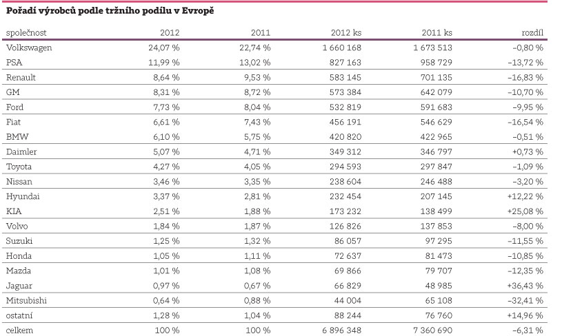 Nevelké výkyvy vykazuje také postavení značek na našem trhu, kterému pochopitelně nadále a suverénně dominuje Škoda držící první pozici s 29 207 registracemi, což představuje 30,99 % trhu. Následují Hyundai - 8534 (9,05 %), Volkswagen - 7853 (8,33 %), Ford - 7299 ks (7,74 %), Renault - 5580 (5,92 %), KIA - 4502 (4,77 %), Peugeot - 3793 (4,02 %), Citroën - 2942 (3,12 %), Toyota - 2110 (2,23 %), BMW - 2014 (2,13 %) atd.