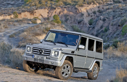 Mercedes-Benz řady G byl původně postaven pro Bundeswehr, ale sériově se od roku 1979 vyrábí i pro civilní zájemce, kterých je více než dostatek. Byť se jedná o dopravní prostředek pro hodně solventní motoristy. Nynější nová generace přináší spoustu pozoruhodných detailů - bohatou soustavu informační technologie v čele s momentálně nejlepší navigací a internetovou komunikací, nový interiér na skvělé ergonomické úrovni, elegantnější barevné řešení, denní osvětlení LED pod hlavními světlomety, nové nárazníky, větší vstupy vzduchu do motoru a k brzdám, adaptivní tempomat, naváděcí soustavu Parktronic s kamerou na zádi, elektronickou asistenci rozjezdu do stoupání, ESP, stabilizaci jízdy s přívěsem, kola o o 20 palců, nová zpětná zrcátka, standardně determální zasklení, motor G 350 BlueTEC - přeplňovaný vznětový vidlicový šestiválec 2987 cm3 o výkonu 155 kW/3400 min-1,540 Nm/1600-2400 min-1, SCR s doplňováním AdBlue v servisních intervalech -, motor G 500 - zážehový vidlicový osmiválec o zdvihovém objemu 5461 cm3 a výkonu 285 kW/6000 min-1 a 530 Nm/2800-4800 min-1, převodovka sedmistupňová samočinná 7G-Tronic plus, závěry všech diferenciálů s elektrickým ovládáním, rozšířen sortiment o exkluzivní speciály AMG G 63 AMG se zážehovým vidlicovým osmiválcem 5461 cm3 přeplňovaným dvěma turbodmychadly (400 kW/5500 min-1, 760 Nm/2000-5000 min-1) a G 65 AMG se zážehovým dvanáctiválcem 5980 cm3 přeplňovaným dvěma turbodmychadly a se Start/Stop systémem (450 kW/4300-6500 min-1, 1000 Nm 2300-4300 min-1), dva rozvory náprav, karoserii také kabrio. Základní cena G 350 začíná na 85 311 eurech bez daně, typu AMG 65 však již od 264 180 eurech bez daně.