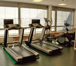 Krátce před odjezdem navštěvujeme fitness centrum umístěné v posledním patře. Prosklená místnost s překvapivým výhledem nabízí řadu lákavých možností k protažení těla. Vše je čisté, uklizené, bez jakéhokoliv zápachu. Vyleštěnými okny dopadají paprsky slunce, aby dotvořily pohodovou náladu tohoto místa. Na zdi je vyvěšena i doporučená běžecká trasa po parkovém okolí hotelu.