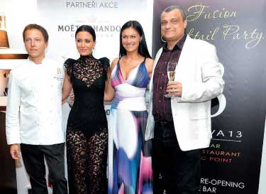 Začátkem října se konala slavnostní fusion cocktail party restaurace Bílkova 13 u příležitosti znovuotevření restaurace, pod vedením nového managementu a šéfkuchaře. Během slavnostního večera měli hosté možnost ochutnat speciality nového konceptu kuchyně. Na fotografii zleva je zachycen Jaroslav Zahálka, šéfkuchař restaurace Bílkova 13, Gábina Partyšová, moderátorka slavnostního večera, Renáta Rožníčková, generální ředitelka Bílkova 13, a Roman Vaněk, šéf Pražského kulinářského institutu.