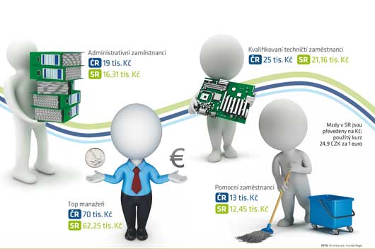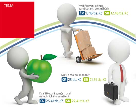 Čeští muži berou o 23 % více než Slováci. Rozdíl ve mzdách žen je mezi státy menší, Češky vydělávají jen o 7 % více než Slovenky.