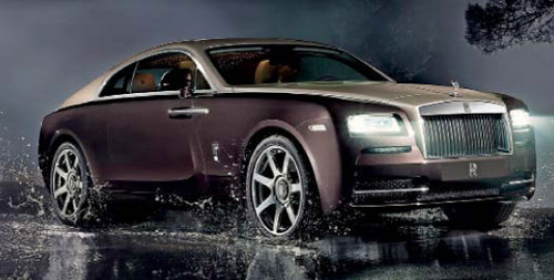 Značka Rolls-Royce vznikla v roce 1904. Dnes sice žije v rodině BMW, ale rozhodně nikoli v nouzi, přestože již jen jako výrobce osobních automobilů. Letecké motory či tanky a další technika se vyrábějí v nezávislém koncernu. Automobilka letos uvedla do prodeje novou řadu Wraith přesně v duchu dosavadní filozofie. Vrcholně luxusní, důstojně elegantní a technicky dokonalou. Nádherný čtyřdveřový sedan ve dvojtónové barevné kombinaci s rozvorem náprav 3112 mm, formátu 5269 x 1947 x 1507 mm s provozní hmotností 2360 kg pohání kapalinou chlazený, dvěma turbodmychadly přeplňovaný zážehový vidlicový dvanáctiválec s přímým vstřikováním paliva o zdvihovém objemu 6600 cm3 a největším výkonu 465 kW/5600 min-1 (točivý moment 800 Nm/1500-5500 min-1). Největší rychlost 250 km/h (omezovač), zrychlení z 0 na 100 km/h za 4,6 s, spotřeba paliva ve smíšeném provozu 14,0 l/100 km. Osmistupňová samočinná převodovka ZF je postavena po vzoru ústrojí užívaných v monopostech BMW formule 1,