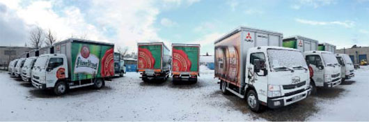 Dopravci ve službách Plzeňského Prazdroje převzali flotilu lehkých užitkových vozidel Fuso Canter k pravidelné modernizaci distribučního parku rozvážejícího pivo v sudech, láhvích i plechovkách. Z nabízených modelů byly zvoleny podvozky 7C15 o celkové hmotnosti 7500 kg, redukované na 5990 kg, s širší verzí budky řidiče, poháněné přeplňovaným vznětovým čtyřválcem o výkonu 110 kW a podvozky 6C18 se znakem náprav 4x4, celkovou hmotností 6500 kg, motorem o výkonu 129 kW (všechny Euro 5/EEV). Skříňové nástavby dodala plzeňská Osona.