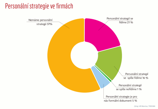 Personální strategie je u velkých firem i v dnešní době spíše výjimkou. Ačkoliv bychom mohli očekávat, že se v podnicích s více než 100 zaměstnanci bude dělat personalistika systematicky, ukazuje se, že i v dnešní době se personální strategií řídí pouze 37 % velkých firem v ČR. Ostatní firmy buď personální strategii vůbec nemají (57 %) nebo se jí neřídí. Vyplývá to z průzkumu HR Monitor.