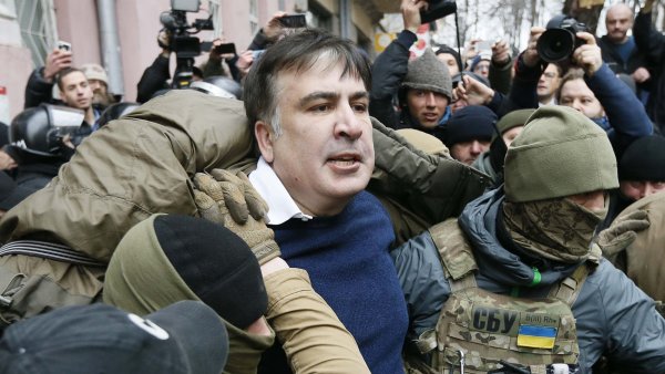 Ukrajinští policisté zatkli bývalého gruzínského prezidenta Michaila Saakašviliho v jeho bytě v Kyjevě. Policisté Saakašviliho vyvlekli, zatímco venku na ulici stále protestují exprezidentovi příznivci. Ti se snaží zabránit policejnímu autu v odjezdu.