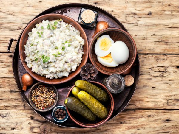 Pro většinu lidí z bývalého Sovětského svazu je symbolem Nového roku salát Olivier. V 19. století ho vymyslel francouzský kuchař Lucien Olivier pro zbohatlé moskevské kupce. Někteří lidé však dnes považují salát za symbol sovětské epochy, kterého je třeba se zbavit. Rusko Ondřeje Soukupa.