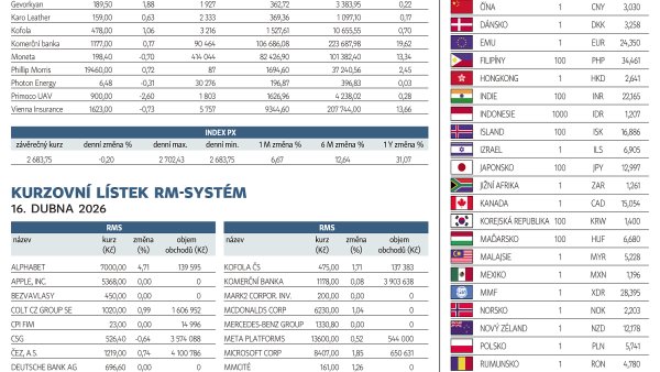 Finanční trhy (16. 4. 2026)